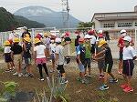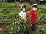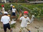 3・4年生が学校農園の枝豆を収穫しました。