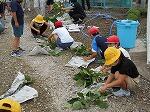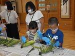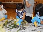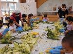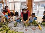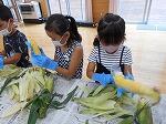 トウモロコシの皮むき体験(1年生)