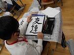 今日の5年生の書写は毛筆で『友達』を書きました。先生の説明を聞いた後、それぞれに書き出しました。「はらい」がなかなか難しかったようです。