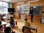 今週は、栄養教諭を目指している教育実習生を受け入れています。今日は、2年生のクラスで「なんでも食べて元気になろう~ゲンキッズ~」という題材で研究授業を行いました。調理場で給食ができるまでの様子を説明し、紙芝居で栄養バランスについて、視覚的に理解させていました。
