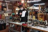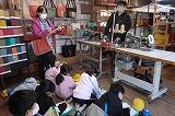 最後に、いちひこ帆布を見学しました。名前の由来や商品の特徴や作り方など、実践も交えて説明していただきました。