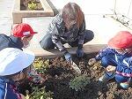 寒い冬を越えられるように、おふとんの役目の土をたくさんかけてあげてねと言われて、子どもたちはやさしく土をかけていました。春には赤・白・黄色・・・ピンクもあったかな?のチューリップがたくさんさくことでしょう。今年赴任した春に、花壇のチューリップが微笑むように咲いていたことを鮮明に覚えています。また春が楽しみです。