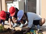 今日は、栃木地区更生保護女性会寺尾支部の5名の皆様が来校され、チーリープの球根を花壇に植えてくださいました。せっかくの機会なので、1年生がお手伝いをして、200球以上の球根を一緒に植えさせていただきました。