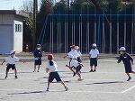 3・4年生の体育でタグラグビーを行いました。校庭を走り回って、体力づくりに効果がある競技です。守り方は、タックルなどではなく、腰の左右に垂らした「タグ」と呼ばれるテープを取るだけです。ぶつかり合わないので安全で、敏捷性やバランス感覚を鍛えるうえ、勝つことを考え、個人の技術やチームで連携した作戦が必要なので、考える力も身につきます。