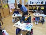 2年生が国語の時間におもちゃの作り方を説明するための作文を書きました。1年生に説明することを想定して、分かりやすく書きました。また、自分で紙芝居を作りました。絵も文もとても素敵な作品ができあがりました。今日は、発表会です。おもちゃの作り方と、紙芝居を1年生に説明しました。とても分かりやすくて、1年生が何度もうなずいて納得していました。また、2年生が自作の紙芝居を1年生に読み聞かせをしている姿は、今日の冬至のゆず湯よりも心が温まります。