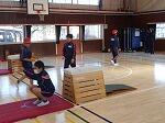 5・6年生が体育で器械体操を行っていました。助走をつけて、跳び箱の上で前転し、着地です。危うく跳び箱から落ちそうになる場面もありましたが、ビシッと着地が決まるとかっこよかったです。