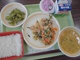 ご飯 牛乳 豚肉とにらのキムチ炒め 黒大豆の枝豆