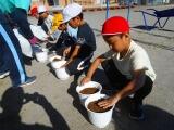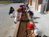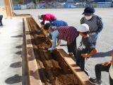 本日の2時間目、校舎の花壇にチューリップの球根を植えました。