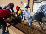 地域のボランティアの方と1年生及びおおぞら学級の子供達が一緒に協力して植えました。