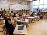 5年生の家庭科では「ごみをへらす工夫」について学習していました。1年間で一人あたりどれくらいのごみをだしているのかを知ると、大変驚き、ごみをへらす工夫について発表していました。