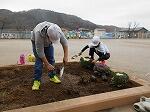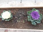 美化委員の子どもたちが、花壇に葉ボタンを植えてくれました。紫色と白色の葉ボタンが交互に並びました。
