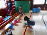 ペアになって、ボールを真上に投げてキャッチしていました。ボールをキャッチする前に手をたたくなどハードルが上がっていきます。思ったよりも難しそうでしたが、楽しくチャレンジしていました。