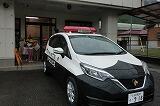 2年生は今日、生活科の学習で町探検を予定していましたが、天気の都合で、駐在所のみ見学に行ってきました。