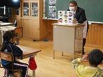 今週は、栄養教諭を目指している教育実習生を受け入れています。今日は、2年生のクラスで「なんでも食べて元気になろう~ゲンキッズ~」という題材で研究授業を行いました。調理場で給食ができるまでの様子を説明し、紙芝居で栄養バランスについて、視覚的に理解させていました。
