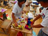 方眼紙を使ってこちらも箱をつくりながら、箱と箱を組み合わせたり形を工夫したりして小物入れ等を作っていました。