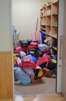 学年教材室や更衣室に、『だんご虫の姿勢』を作り、避難しました。