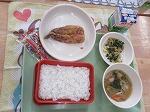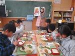 栄養教諭から献立の紹介をしていただき、給食に感謝して今日もおいしくいただきました。