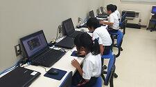 今日は、パソコン室で、ゲームを通して九九の勉強です。