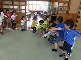 午後の音楽の授業は、生活科室で、のびのびと音楽に合わせて体を動かしました。