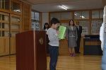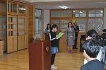 始業式では、新3年生と新5年生が代表で作文を発表をしました。