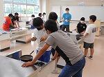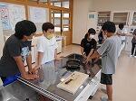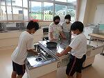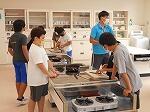 グループごとにまな板、包丁、菜箸、フライパンを用意したり、ガスレンジの着火と消火を行ったりしました。