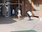 6年生が児童の昇降口前の清掃と、花への水やりを行ってくれています。