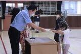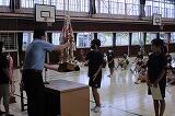朝の活動の時間に体育館で、1学期がんばったことへの表彰朝会を行いました。