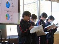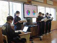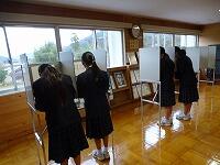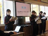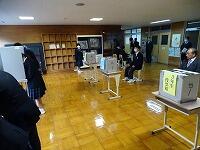 11月27日(木)に立会演説会及び生徒会役員選挙を行いました。選挙管理委員の生徒が会場準備と司会進行をしました。“学校をより良くしたい、みんなのために頑張りたい”と、立候補したすべての生徒の皆さんの心意気に心より敬意を表します。ありがとうございました。演説を聴く生徒の態度もとても立派でした。最後に、立候補者全員の演説に対して、立ち会ってくださった学校運営協議会委員の方からお褒めの言葉をいただきました。
