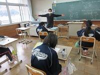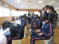 3年生は、体育館で体育です。剣道の授業をしていました。面をつけて行っていたので、表情は読み取れませんが、先生の熱心な指導で集中して取り組んでいました。連続の技を練習していました。凛々しいですね。