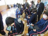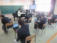3時間目、2年生は音楽です。タブレット端末のアプリを使って曲をつくる課題に取り組んでいました。学校生活のある場面を選んでBGMをつくる活動です。いろいろとアレンジできます。楽しそうです。音楽の授業の風景も変わりましたね。