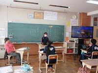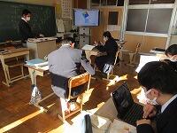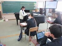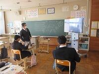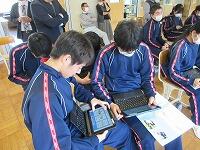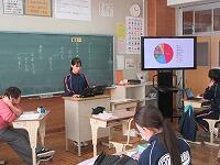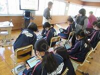 3年生は、理科です。人間の生活が自然環境にどのような影響をもたらすのか。予想し、タブレットを使って具体的に調べていました。タブレットで調べるといろいろと出てきますが、内容を理解するにはみんなで共有することが大事ですね。先生も一緒に共有します。
