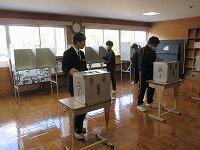 栃木市役所から借りてきた実際の選挙で使用する投票箱、記載台を使って行います。