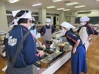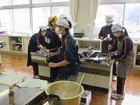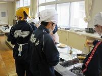 厚焼き玉子と豚汁を作っていました。厚焼き玉子は、四角形のフライパンを使って形を整えながら作っていました。
