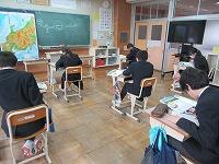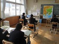2年生は、社会科地理的分野の学習です。中部地方(東海地方)の地域的特色を地図や資料を読み取っていました。やはり、一人一人が課題にしっかりと向き合っています。