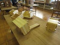 木材加工の作品にニスを塗って完成させていました。きれいですね。