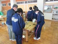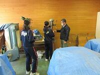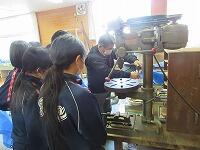 金属加工に取り組んでいました。先生が見本を見せて安全に取り組んでいます。