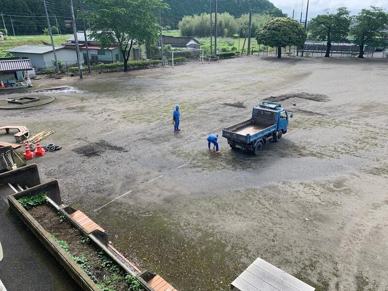 昨年10月の水害によって被害を受けていた、校庭を整備していただきましたので、ご報告いたします。主に校庭東側のスロープ付近が大きく削れていましたが、新たに土や砂を入れ、ローラー車等でならしていただきました。 【 Before1 】 ⇒ 【 After1 】 【 Before2 】 ⇒ 【 After2 】