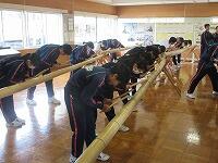 本日、昼休みに全校生徒で三峯太鼓の練習をしました。