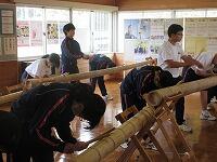11月9日(日)に開催する寺尾中閉校イベントに向けての練習です。体が覚えているようで、すぐにリズムよくたたいていました。さすがですね。太鼓と竹の音、そして生徒全員の動きの統一感、いつ見ても心に響くものがあります。