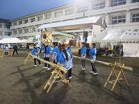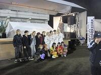 寺尾中の生徒も、15時30分に集合して準備したのち、大抽選会の後、16時50分頃に三峯太鼓を演奏しました。