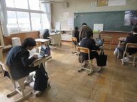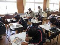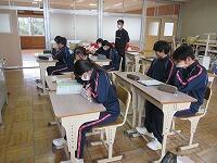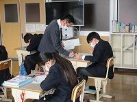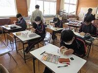 3年生は、数学です。問題を解いていました。先生が一人一人の解答を確認しながら、生徒に合わせて個別に支援しています。小規模校の強みですね。