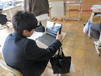 3時間目、2年生は音楽です。タブレット端末のアプリを使って曲をつくる課題に取り組んでいました。学校生活のある場面を選んでBGMをつくる活動です。いろいろとアレンジできます。楽しそうです。音楽の授業の風景も変わりましたね。
