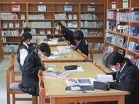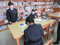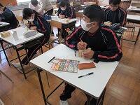 3時間目、1年生は国語です。図書室で自分が選んだ本の紹介文を書いていました。内容や魅力が読み手に伝わるよう考えながら文章を書いていました。生徒によっていろいろなジャンルの本があり、楽しそうです。