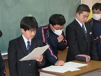 11月27日(木)に立会演説会及び生徒会役員選挙を行いました。選挙管理委員の生徒が会場準備と司会進行をしました。“学校をより良くしたい、みんなのために頑張りたい”と、立候補したすべての生徒の皆さんの心意気に心より敬意を表します。ありがとうございました。演説を聴く生徒の態度もとても立派でした。最後に、立候補者全員の演説に対して、立ち会ってくださった学校運営協議会委員の方からお褒めの言葉をいただきました。