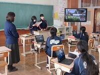 3年生は、理科です。人間の生活が自然環境にどのような影響をもたらすのか。予想し、タブレットを使って具体的に調べていました。タブレットで調べるといろいろと出てきますが、内容を理解するにはみんなで共有することが大事ですね。先生も一緒に共有します。