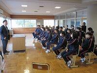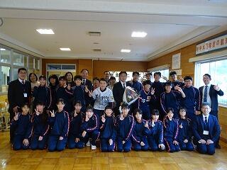 今年度は、本校の卒業生でもあり、元プロ野球選手(阪神タイガース)である中野佐資さんを講師として来ていただきました。プロ野球選手になるまでの経緯やその当時大切にしていた考え方を中心に阪神タイガース時代のエピソードなどを身振り手振りを交えて楽しく話してくれました。最後には、生徒たちに自分が育った小規模校の経験に自信を持って統合後も頑張ってほしいと勇気をいただきました。中野さんはもちろんのこと、阪神タイガースの背番号0のユニフォーム、かっこよかったです。ありがとうございました。