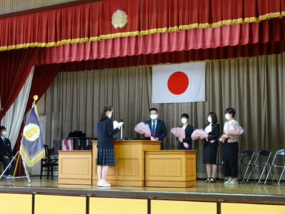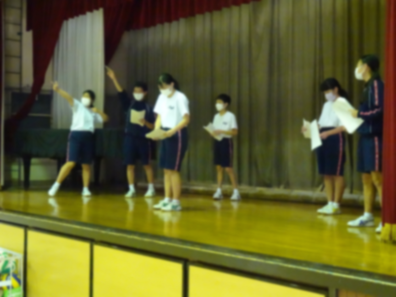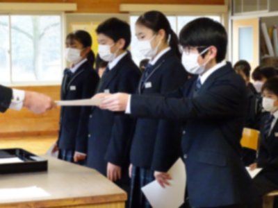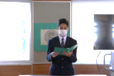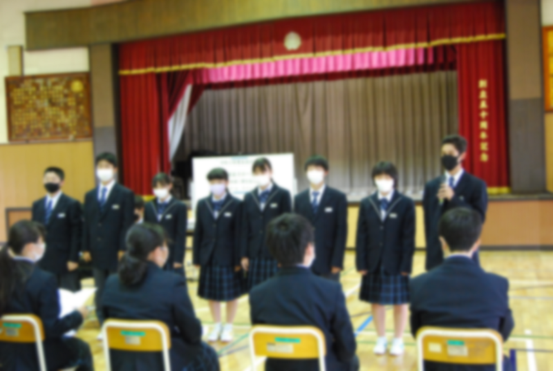 【校長式辞】 【校歌斉唱】 【代表生徒による作文発表】