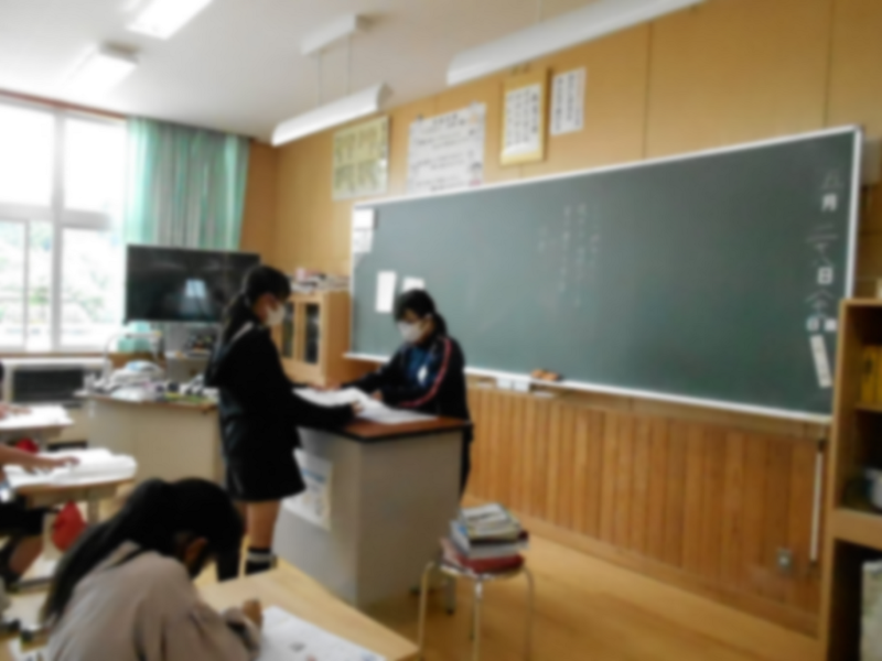 11月9日(水)の5校時、来春中学校入学を迎える6年生のために、寺尾中学校の様子を紹介する時間がありました。1年生の代表生徒が6年生の教室に行き、あらかじめ用意された授業、部活動、先輩との関係、学校行事等に関する質問に答える形で中学校の様子を紹介しました。グループに分かれて質問を受け付ける時間もあり、中学生は先輩として、6年生に中学校のよさを伝えていました。6年生の中学入学に向けての安心感が少しでも高まれば嬉しいです。