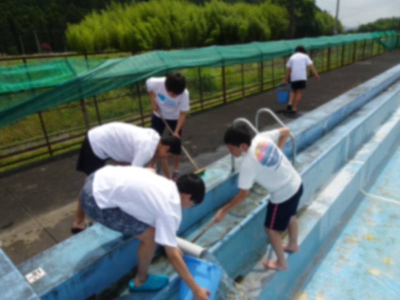 6月15日(水)、健康体育委員会の生徒を中心に、今年度のプール開きを行い安全を祈願しました。生徒のみなさんのお陰で、プールもこんなにきれいになりました。この後、1学期の間は、天候がよく気温が高ければ、保健体育科の授業では水泳を行うことになります。