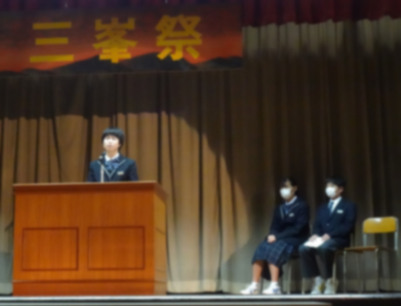 合唱や演劇、和太鼓、さらにはパフォーマンスや各係活動と、生徒たちは一人何役もこなしながら、いずれも素晴らしい発表を披露し、会場は感動や笑顔でいっぱいになりました。どれをとってもどの学校にも負けない素晴らしい発表で、本校生の無限の可能性を感じることができました。まさにスローガンどおりの素晴らしい三峯祭になりました。生徒の皆さんは、今回の三峯祭の成功を通して、たくさんの達成感や充実感を感じることができたと思います。